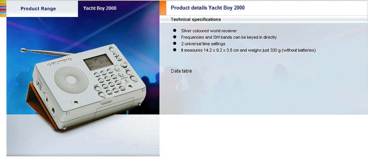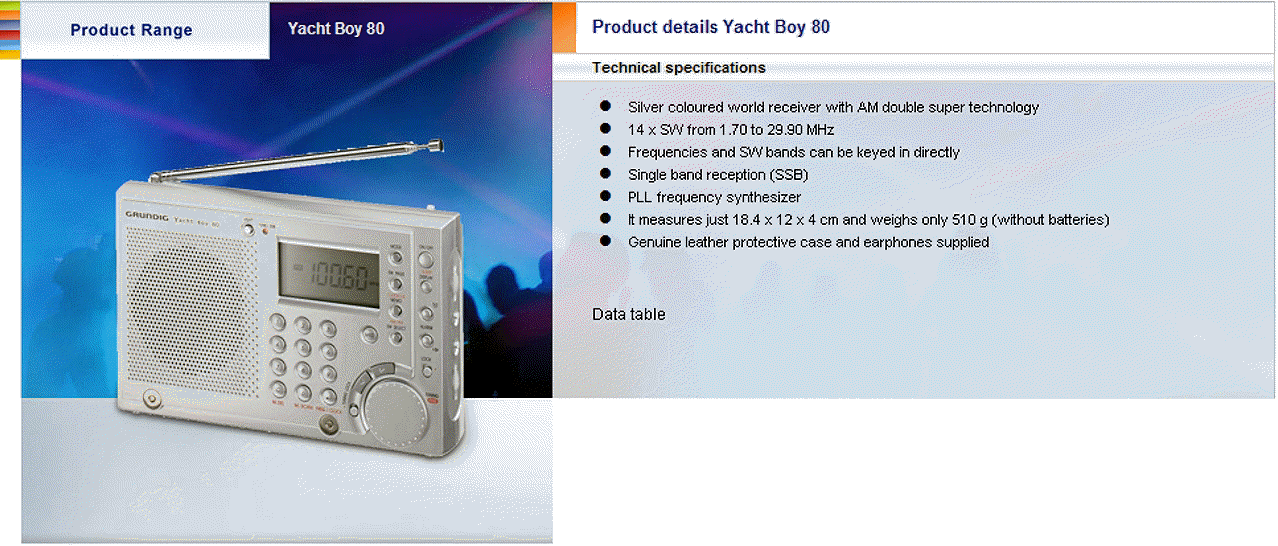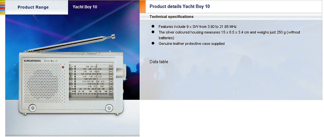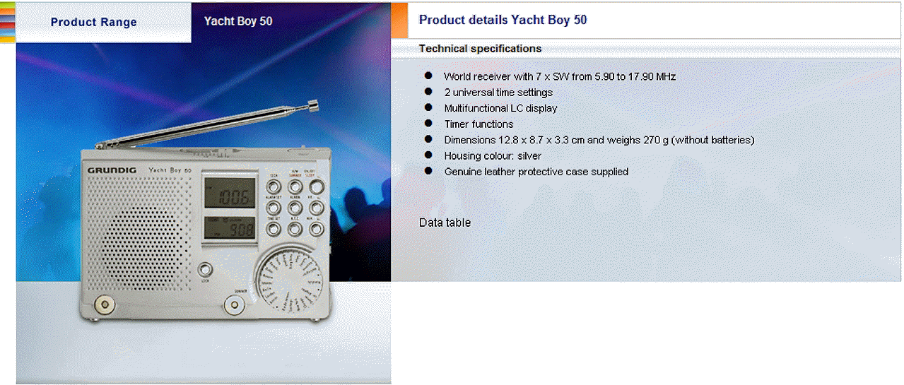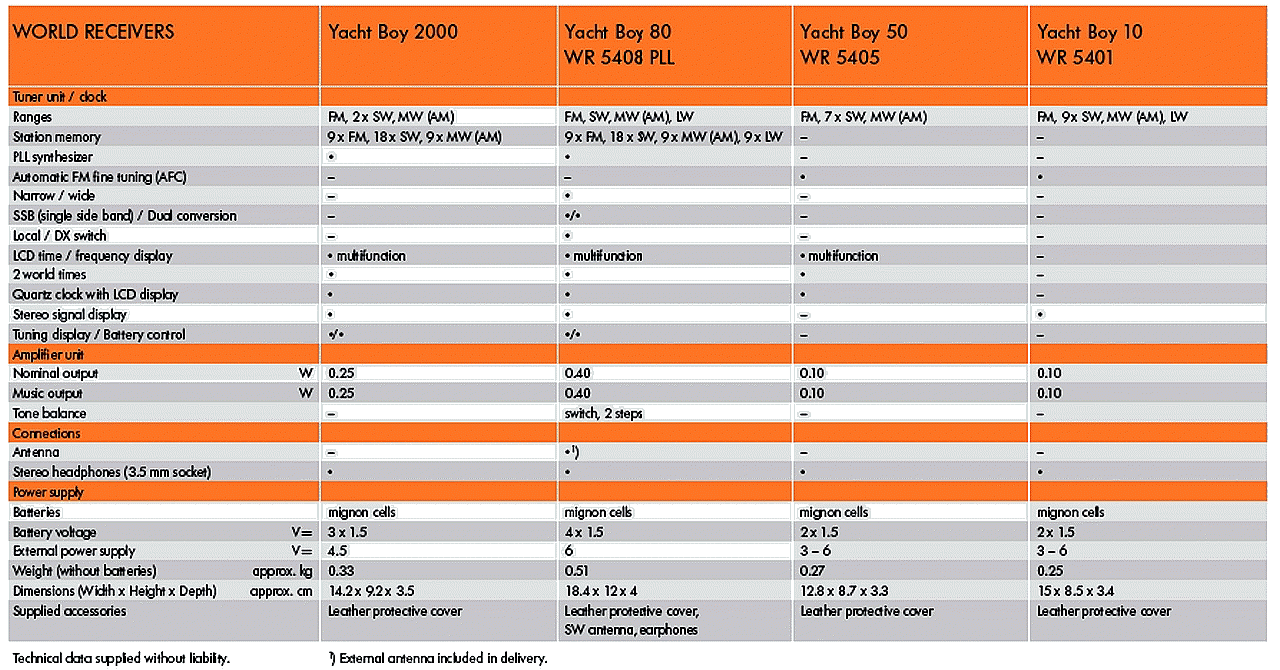 Specifications for Grundig World Receivers / 2007: