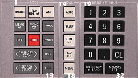 19-29: NUMERIC KEYS for direct frequency entry. Also for selection